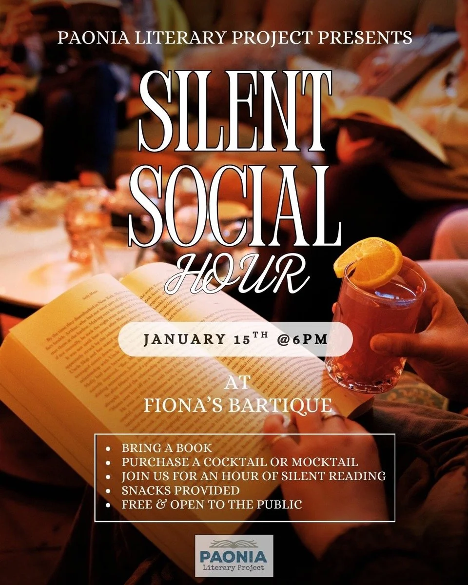 Join Paonia Literary Project at our Silent Social at Fiona’s Bartique on Thursday, December 11 at 6pm. We’ll have a cozy and quiet spot for us to gather and read together for an hour.